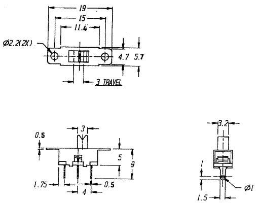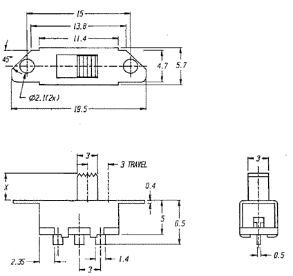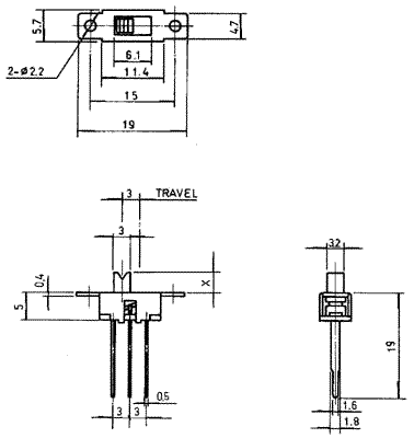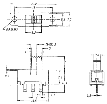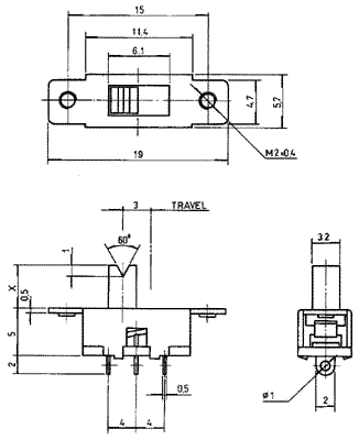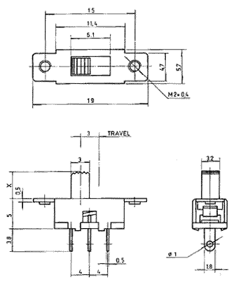 переключатель движковый прямой 1P2T