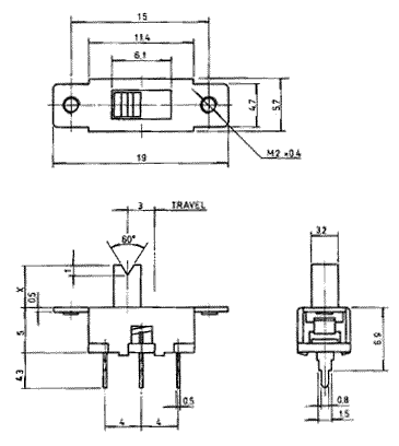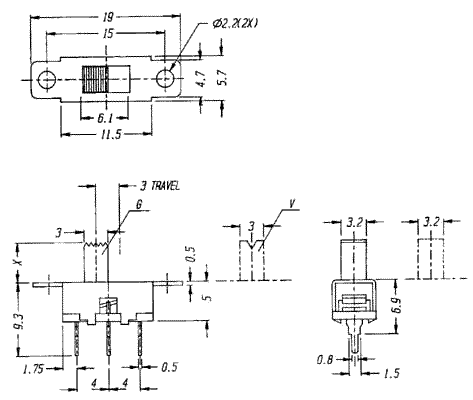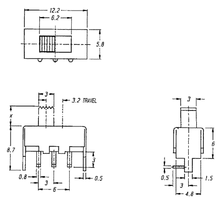 SS12F8 SS12F8, Серия SS (1P2T), Переключатели движковые (Slide) 1P2T