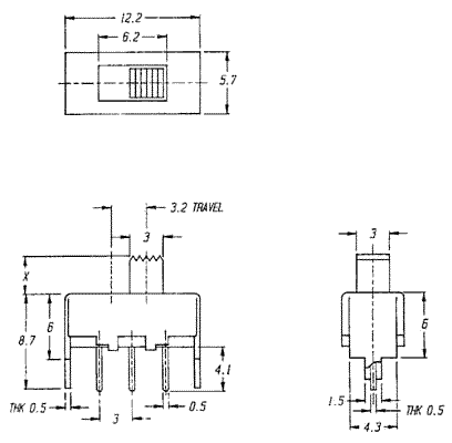 SS12F3 SS12F3, Серия SS (1P2T), Переключатели движковые (Slide) 1P2T